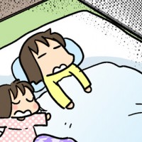 寝た姿勢のまま赤ちゃんを胸の上に置いて休んでいる間に、